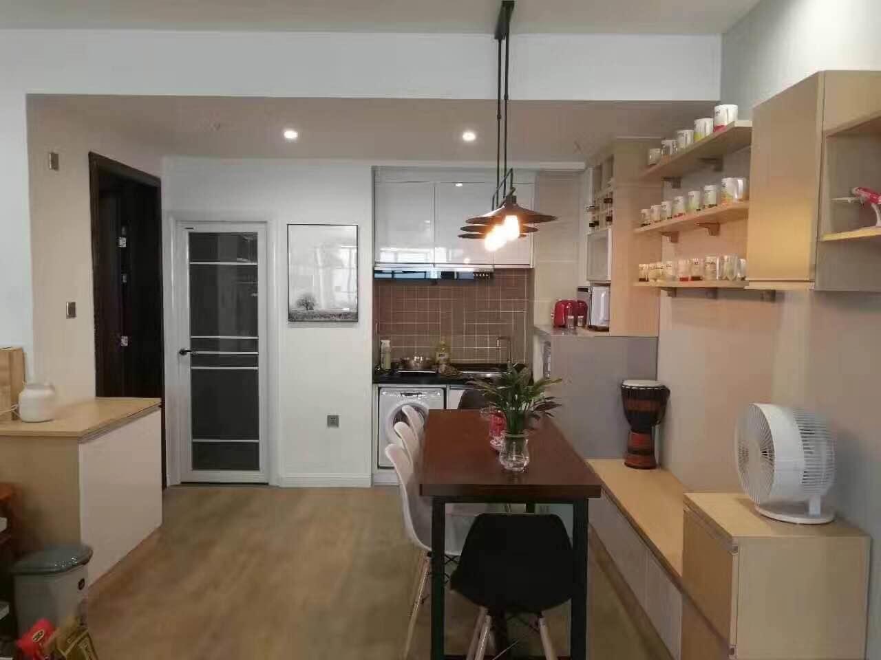 由于戶型較小,不方便做太多復(fù)雜的裝飾。合理的布局,讓客戶的空間能最大化利用。整體墻面以白色為主,櫥柜家具以淺色為主,讓光線更亮,視覺更開闊,整體感覺空間更大。墻面很多地方都設(shè)有櫥柜或置物架,讓墻面空間利用更高,能最大化利用空間。