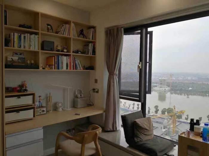 陽臺(tái)-在臥室內(nèi)窗邊上做了一個(gè)小的榻榻米,上面放了可移動(dòng)的梳妝臺(tái)。墻邊做了一個(gè)書桌,更完整。