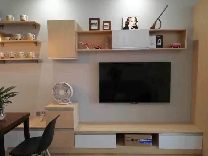 客廳-客廳也為了最大化利用空間,在沙發(fā)背景墻上面也做了裝飾性的柜子,也能作為置物架。